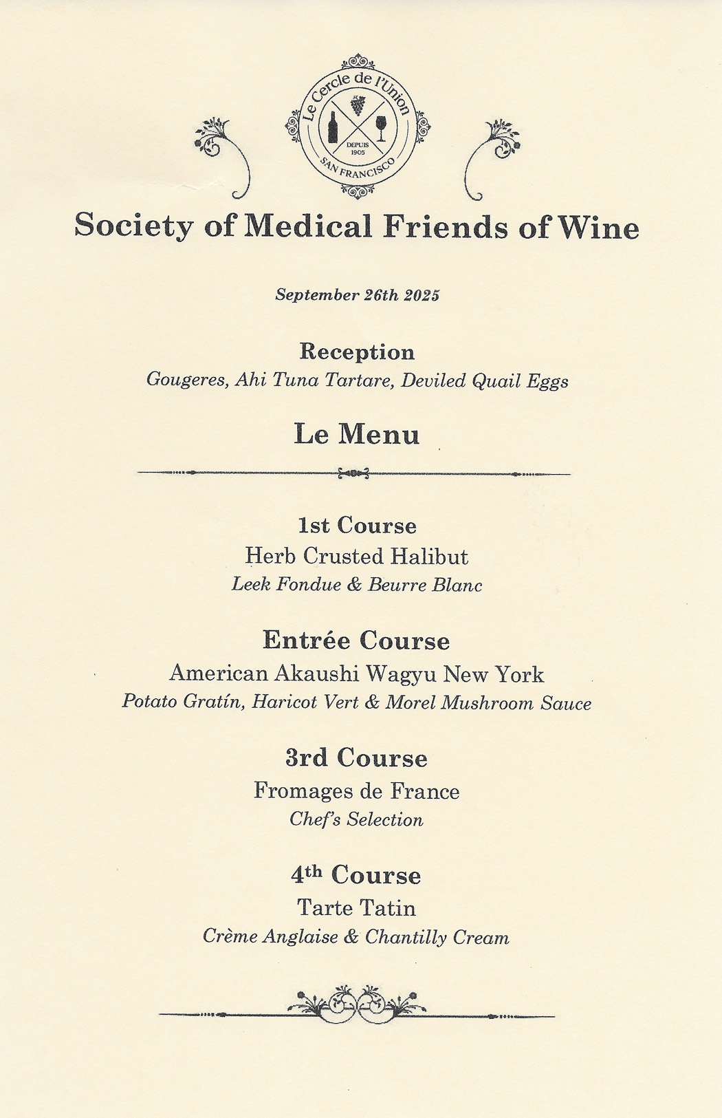 299th Quarterly Dinner, French Club, San Francisco, CA, September 26, 2025